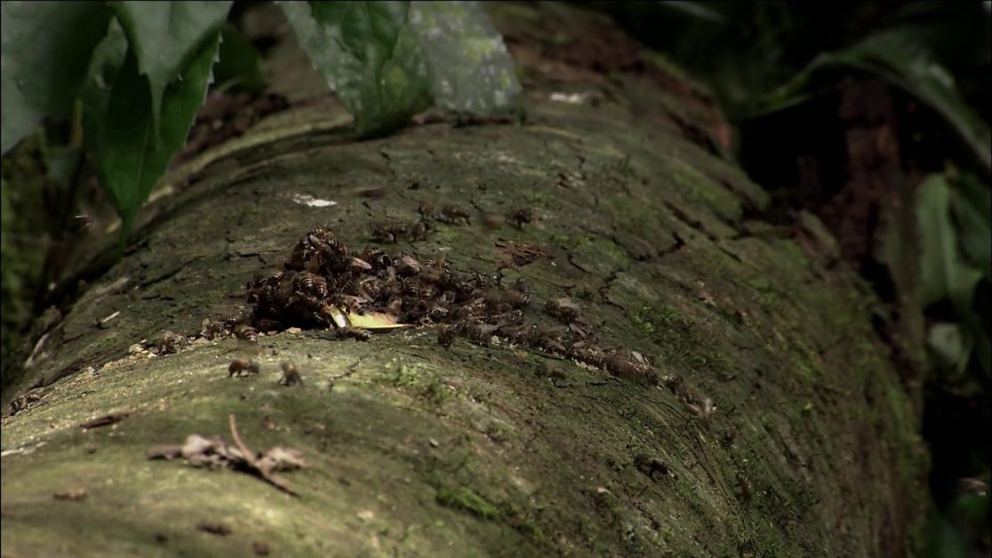 Klaus Zuberbühler und Thibaud Gruber, Primatologen der Schweizer Universität Neuchâtel, stützen mit ihren jüngsten Forschungsergebnissen Boeschs Beobachtungen. In den Wäldern Ugandas untersuchen sie, wie nah sich Schimpanse und Mensch in Kulturfragen sind. Dabei beobachten sie benachbarte Schimpansenpopulationen, die beim Werkzeuggebrauch völlig unterschiedliche Wege gehen – obwohl sie exakt der gleichen Art angehören. Darüber hinaus untersuchen die Forscher das Sprachverständnis und die Kommunikationsfähigkeiten der Affen bei der Futtersuche und Jagd. Und: Mit einem spektakulären Feldexperiment wollen Gruber und Zuberbühler sogar herausfinden: Lässt sich ein bisher fremdes Kulturmerkmal in eine Schimpansengruppe implantieren?