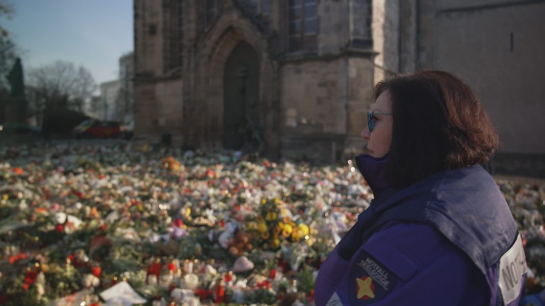 Wie verarbeiten sie die Ereignisse dieses Abends? Welche Antworten finden Seelsorgerinnen auf die Verzweiflung vieler Menschen? Der Film von Emma Mack und David Holland begleitet auch einen Medizinstudenten, der in der Nacht des Anschlags mit unzähligen Kolleginnen und Kollegen an der Magdeburger Uniklinik Verletzte versorgte. Der junge Mann hat einen Migrationshintergrund. Seit dem Anschlag, sagt er, wird er bedroht, fühlt sich nicht mehr sicher in Magdeburg. Wie hat sich das gesellschaftliche Miteinander verändert? Welche Rolle spielen die sozialen Medien? Und wie wird die Tat inzwischen instrumentalisiert? Fragen, denen das Filmteam in einer Datenanalyse nachgeht. Wer war Taleb A. und warum haben die Behörden nicht auf Warnungen im Vorfeld der Tat reagiert?