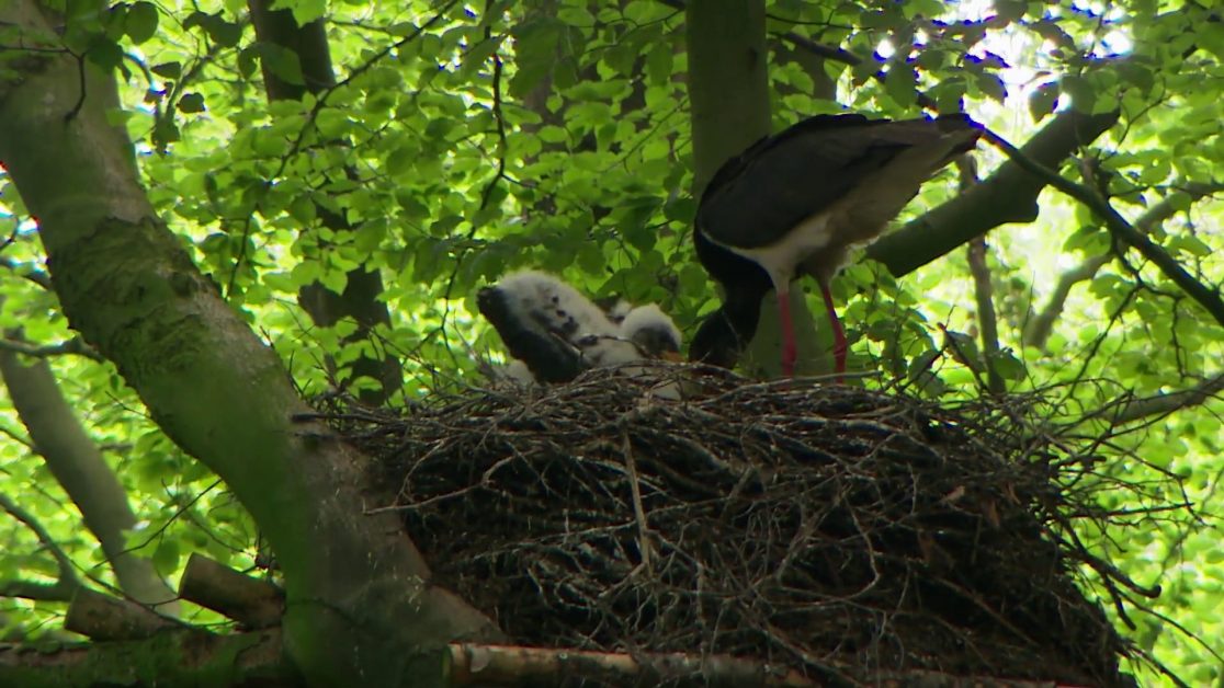 Der Schwarzstorch gehört zu den seltenen und schwer zu beobachtenden Zugvögeln in Norddeutschland. Anders als sein Bruder der Weißstorch nistet er scheu und zurückgezogen in alten geschlossenen Wäldern. Und dort jagt er auch in sauberen Bächen oder flachen Tümpeln und Teichen, primär nach Fischen. In der Felderberger Seenlandschaft gibt es zurzeit wahrscheinlich nur noch ein Brutpaar. Und das wäre beinahe endgültig vertrieben worden nach einem schweren Gewittersturm vor über 20 Jahren. Das zerstörte Nest hat Naturschutzwart Fred Bollmann aus Feldberg damals aber repariert und damit dafür gesorgt, dass die scheuen Vögel wieder zurückgekehrt sind. Seitdem kümmert er sich immer wieder im Frühjahr um das Nest und wartet sehnsüchtig auf die Rückkehr der Schwarzstörche. Und hofft natürlich auf viele kleine Küken im Nest. In diesem Jahr scheint aber alles anders zu sein als in den Jahren zuvor. Die Störche lassen sich kaum blicken, wo sie sonst immer wieder anzutreffen waren. Offenbar gibt es Probleme, die den Schwarzstorchmann sehr beunruhigen.